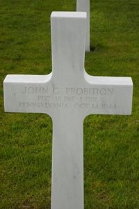 Pfc John G. Probition attended high school for 3 years before he joined the Regular Army in Philadelphia, Pennsylvania on 3 January 1941.On 1 May, 1943, he was wounded in action in North Africa for which he was awarded the Order of the Purple Heart on 16 May that year. Before leaving the States, he was stationed at Staten Island, N.Y.; Fort Devens, Mass,; in South Carolina and Florida and finally Indiantown Gap. From North Africa he went to Italy, Sicily and then to southern France to Germany.