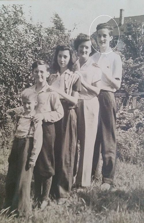 On the group photo, he poses with his brothers and sisters, as eldest, he is the laste one in the row.