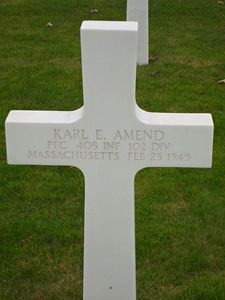 Pfc Karl E. Amend enlisted at Fort Devens, Massachusetts on 9 March 1944.Source of information: Peter Schouteten, Raf Dyckmans, Robert Amend (son), WWII Memorial, Fold3, National Archives, www.ancestry.com - 1940 Census / Family Tree / U.S. WWII Draft Cards Young Men