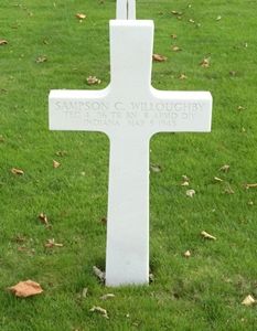 T/4 Sampson C. Willoughby graduated from Columbus High School in 1942. He was employed by Noblitt-Sparks Industries.He enlisted at Fort Benjamin Harrison, Indiana on 18 March 1943 and took most of his training at Camp Polk, Louisiana. He attended the Armored Forces School at Fort Knox, Kentucky, for a course in tank mechanics, and had been overseas since November 1944.