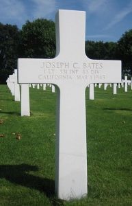 My father (Russell Sparks), who was three years older than Lt Bates, was standing right next to him when an incoming artillery shell hit the tree they were standing under, spraying them with shrapnel. They both hit the ground, but while my father was badly wounded in the shoulder (effectively ending his war), Bates was killed. My father was very fond of his Lieutenant, and told me this story many times. Russell Sparks died in 2007 at the age of 94.