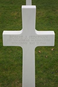 1st Lt Robert J. Federman was a stock clerk. He enlisted in Milwaukee, Wisconsin on 16 June 1941.The airplane was shot down by enemy fighters. Before it crashed, it clipped a rooftop of a hous in the village of Hahnstätten and then plumetted into a hillside about 50 yards further. It burst into flames immediately. Attemps were made to save the crew but extreme heat prevented villagers from getting too close. Instead the villagers waited and, after the bodies were recovered, they were taken to a local churchyard and buried in a common grave. A white marble marker was placed at the gravesite with the numbers of the men, taken from their dog tags. The villagers took care of the grave very well and even placed flowers.