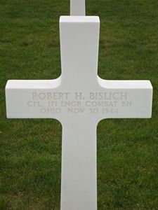 Cpl Robert H. Bislich graduated from Olmsted Falls High School in 1943 and enlisted on 31 July 1943 in Cleveland, Ohio.Source of information: Peter Schouteten, Terry Hirsch, www.wwiimemorial.com, www.archives.gov, www.ancestry.com - Family Tree / U.S. WWII Draft Cards Young Men