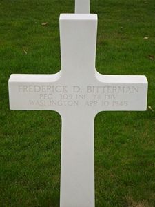 Pfc Frederick D. Bitterman attended Seattle Preparatory School for two years and was employed at the Ballard Marine Railway Company. in Seattle.He enlisted in Seattle, Washington on 7 July 1944.