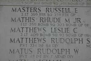 2nd Lt Leslie C. Matthews was a clerk before he volunteered for the Army of the United States in Grand Rapids, Michigan on 13 April 1942. He attended basic training at Kelly Field, Texas and went on to graduate from the AAF Bombardier School in Big Springs, Texas on 1 April 1943. He was sent overseas on 9 September 1943.Crews of other airplanes in the formation spotted this airplane for the last time in the vicinity of 5238N-0620E. At this point the group ran into intense flak and concentrated enemy fighter attacks. To avoid the flak the lead aircraft took violent evasive action which scattered the formation. In the confusion the whereabouts of this aircraft remained unknown.