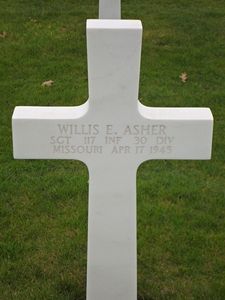 After his second time at Camp Roberts Sgt Willis E. Asher went to Maryland and from there overseas.Source of information: Peter Schouteten, Jasper van Haren, Astrid van Erp, www.wwiimemorial.com, www.archives.gov, www.ancestry.com - Headstone and Interment Record / Family Trees