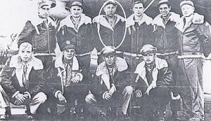 Eight crew members bailed out at 18,000 feet , two were killed.