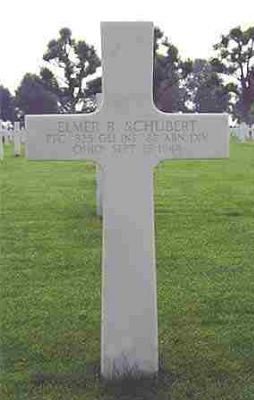 Pfc Elmer R. Schubert enlisted at Fort Hayes, Ohio on 3 April 1943.His brother George is also buried at Margraten Cemetery.