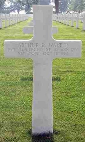 Pvt Arthur B. Walter enlisted on 18 September 1939.Temporary buried at cemetery in Molenhoek, the Netherlands on 13 October 1944, plot E, row 4, grave 76.