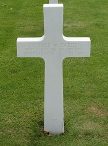 Pvt George W. Deede enlisted in Jamestown, North Dakota on 1 April 1941.He was seriously wounded in action by mortar fire and died of his wounds in a hospital.