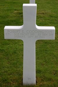 Cpl Robert E. Coddington enlisted in Toledo, Ohio on 9 November 1942 and was sent overseas in April 1943. He participated in the campaigns of Africa, Sicily, Italy and France and was wounded in Italy.He was known as being a good trooper who was often found on patrol in no mans land or enemy territory.
