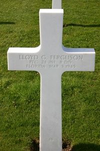 Pfc Lloyd G. Ferguson enlisted in Camp Blanding, Florida on 8 June 1944. He had attempted to join the Navy earlier but was declared 4F because he had flat feet. The Army accepted him later when he tried again.His son competed nationally for an appointment to West Point under the Sons of Deceased Veterans allocation and was one of 13 selected in 1956. He attended West Point and went on to become a Brigadier General with the U.S. Army.