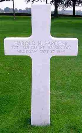 Sgt Harold H. Fargher graduated from Michigan State Normal College. He was employed by the Bendix Aviation Corp.He enlisted at Fort Custer, Michigan on 15 January 1942 and was sent overseas in April 1943. He participated in the campaigns of North Africa, Sicily, Italy and the invasion in Normandy.