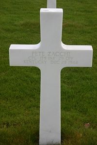 Cpl Pete Zacchi joined the Regular Army at Fort Thomas, Newport, Kentucky on 11 September 1940.He joined his unit from a replacement depot on 27 June 1944 and was lightly wounded in action on 13 July 1944.