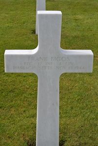 Pfc Frank Bigos was a plumber.He enlisted at Fort Devens, Massachusetts on 23 February 1942 and trained at Camp Pickett, Virginia and Camp Freehold, New Jersey.