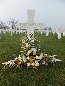 Charles W. Knowles Jr. attended high school for four years.He joined the U.S. Army Reserve in Boston, Massachusetts on 20 May 1943. He trained at Fort McClellan, Alabama and Camp Shelby, Mississippi. He was shipped overseas in November 1944.