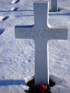 Pfc Edward W. Dlugosz graduated from South Park High School and was employed by the Iroquois Gas Corporation. He enlisted in Buffalo, New York on 17 November 1943.He is buried next to his brother Leo Dlugosz. His brother Frank was wounded on 7 November 1943 in Italy and returned to the United States. His brother Julian served with an Army Air Force maintenance unit in England.