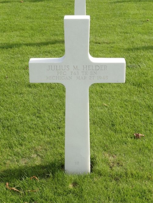Pfc Julius M. Helder enlisted in Kalamazoo, Michigan on 30 March 1943.Pfc Julius Helder was killed in action, attempting to rescue a comrade. For his actions he was awarded the Bronze Star Medal posthumously.
