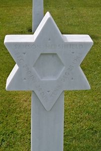 Pfc Samson Hershfield was killed by a machine gun.Source of information: Astrid van Erp, Terry Hirsch, www.wwiimemorial.com, www.ancestry.com - Headstone and Interment Record, http://75thdivisiondad.com