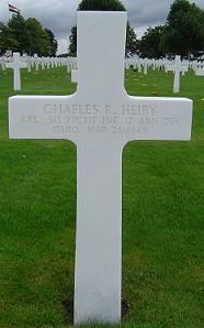 Cpl Charles R. Heiby graduated from Bucyrus High School in 1940 and was employed at the Perfection Vault Company in Galion.He enlisted in Columbus, Ohio on 9 January 1943 and received his paratrooper training at Fort Benning, Georgia. He was sent overseas in August 1944.