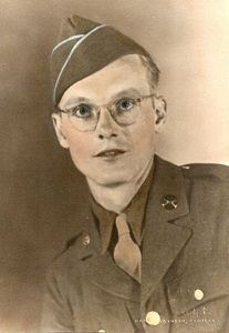 Before enlisting in New Haven, Connecticut on 15 January 1944, he was assiocoated with the Niles, Bement, Pond Division of Pratt and Whitney. His basic training was received at Camp Blanding, Florida.