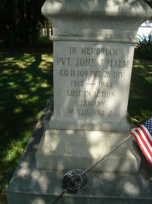 Pvt John J. Malm is remembered at Old Swedish Cemetery in Worcester, Worcester County, Massachusetts with a memorial marker.