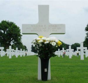 Pvt William E. Adair attended two years at Lafayette High School and worked as a clerk and delivery boy for the Beaty Grocery Store.He enlisted at Fort Leavenworth, Kansas on 22 September 1943 and received basic training at Camp Wolters, Texas.