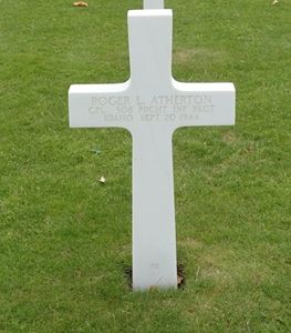 Roger Atherton volunteered for the Army of the United States in Tacoma, Washington on 2 November 1942.He was first buried at the Temporary American Military Cemetery of Molenhoek, the Nethelrands. One picture shows his temporary grave at this cemetery.