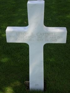 Pfc Leroy E. Cartmill graduated from Carter High School and worked on a farm.He enlisted at Fort Sill, Oklahoma, on 21 March 1944 and was sent overseas in December 1944.