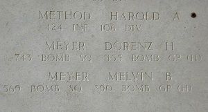 Meyer’s name is recorded on the Tablets of the Missing at the Henri-Chapelle American Cemetery. A rosette will be placed next to his name to indicate he has been accounted for.
