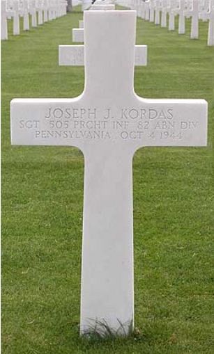 Sgt Joseph J. Kordas enlisted at Fort George G. Meade, Maryland on 24 June 1941.He was first buried at the Temporary American Military Cemetery of Molenhoek, The Netherlands on 5 October 1944.