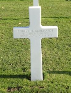 Pfc Robert H. Burkhardt enlisted in Philadelphia, Pennsylvania on 26 February 1943.Pfc Burkhardt could see three German riflemen at a distance of seventy yards bringing enfilade fire upon his buddies. From his prone position with a perfect sight upon them, he began to fire steadily at them.