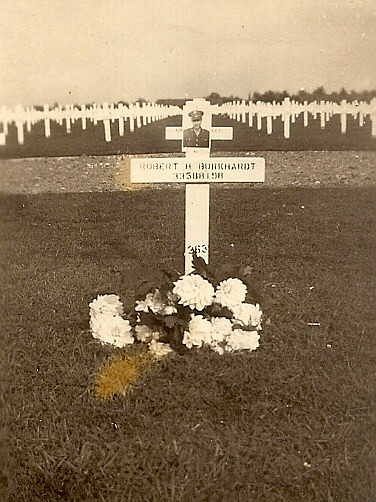 While he was diverting the enemy, the other men in his group crawled back to the concealment of the woods and to safety. Realizing the hopelessness of trying to continue forward, the platoon sought permission to withdraw, and it was granted. Meanwhile two machine guns on his left and to his front began concentrating on Pfc Burkhardt's position. He continued to fire. A few seconds later he was killed by a burst.