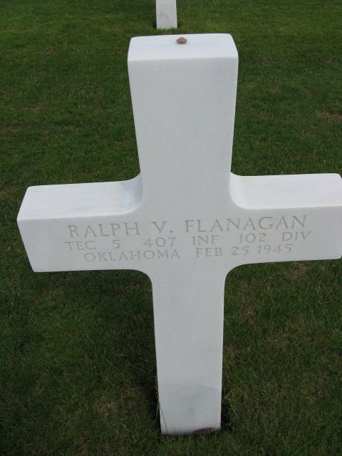 102nd Ozark Division. T/5 Ralph V. Flanagan was killed in Germany near Linnich, Rur river while clearing the path to the Rhine.Source of information: Astrid van Erp, www.wwiimemorial.com, www.ancestry.com - Family Tree