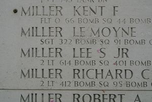 2nd Lt Miller enlisted in October 1942.The aircraft was hit by flak. They flew along, burning for about 30 seconds in formation. It went up steeply, then into a straight dive. The bomb bay seemed to be on fire. The aircraft then exploded.