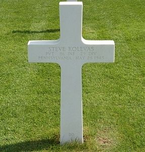 Steve Kolevas was a filer, grinder, buffer or polisher before he enlisted in Allentown, Pennsylvania on 5 April 1943.He joined his unit from a replacement depot on 18 May 1945.