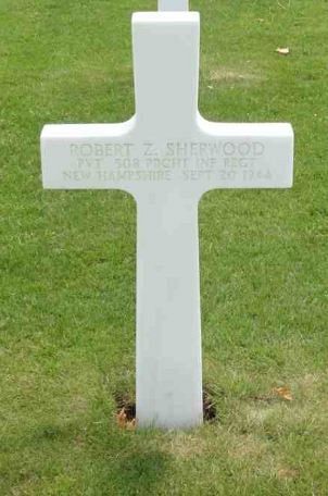 Pvt Robert Z. Sherwood attended high school for 2 years and worked on a farm. He enlisted in Manchester, New Hampshire on 23 June 1943.He was initially buried at the Temporary American Military Cemetery of Molenhoek, the Netherlands on 23 September 1944.
