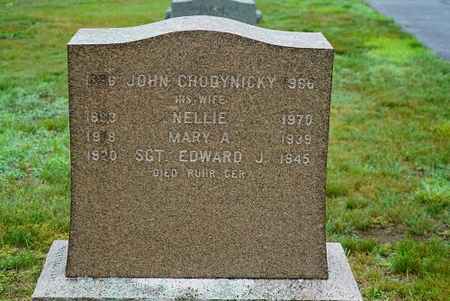 Sgt Chodynicky is remembered at Saint Bridget's Cemetery in Maynard, Middlesex County, Massachusetts with a memorial marker.