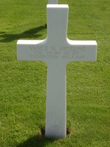Vance M. Ardeune enlisted at Presidio of Monterey in California on 13 March 1942.His mother, Margaret Fanny Wicksell was born in Sweden. She was a teacher at a public school in Minnesota and was widowed in 1930.