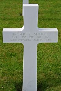 Pvt Robert L. Shoop enlisted in Harrisburg, Pennsylvania on 9 June 1943.At first, his parents were notifed he was missing in action on 10 January 1945 in Belgium. On 16 February 1945 they received a letter from the War Department notifiying his death. 3 Brothers served in the Army during WWII.