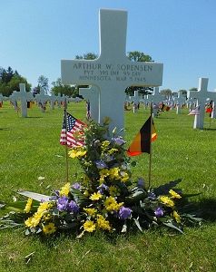 Pvt Arthur W. Sorensen enlisted at Fort Snelling, Minnesota on 26 July 1944. He attended grammar school and was employed as a carpenter.Source of information: Astrid van Erp, Sheree Dowdle, www.wwiimemorial.com, www.ancestry.com - 1930/1940 Census