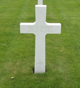Pfc Bowman was initially buried in an isolated grave in Altwied. On 1 March 1946 he was disinterred an reburied in a temporary grave at Margraten on 11 March 1946. He was again disinterred on 28 September 1948 and was given his final resting place a day later.