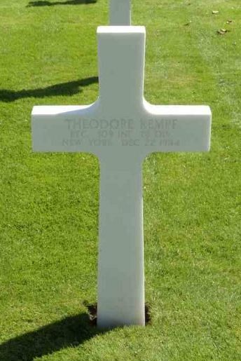 Pfc Theodore Kempf enlisted in New York City, New York on 26 January 1944.Source of information: Peter Schouteten, Terry Hirsch, WWIIMemorial.com, Fold3.com, www.archives.gov - WWII Enlistment Record, www.findagrave.com - James L. Cooper, www.ancestry.com - U.S., Headstone and Interment Records for U.S. Military Cemeteries on Foreign Soil / 1940 Census