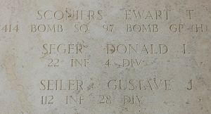 A fellow soldier of I Company witnessed that both Pfc Donald L. Seger and Pfc Ervin F. Bupp sought refuse in a shell crater and were killed by small arms fire. After the battle a search to find the remains of missing soldiers was undertaken but those two men were not found.
