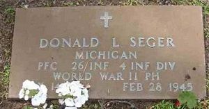 Donald Seger is buried at the Woodland Cemetery, Jackson, Jackson County in Michigan.