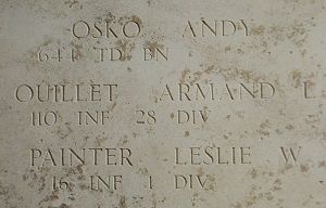 Pvt Armand L. Ouillet was employed by the Johnston Construction Company.He enlisted on 18 November 1943 at Utica, New York. He was sent overseas in June 1944.