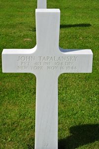 Pvt John Tapalansky enlisted in New York City, New York on 31 October 1942.Source of information: Raf Dyckmans, Astrid van Erp, Peter Schouteten, Carla Mans, www.wwiimemorial.com, www.ancestry.com - Headstone and Interment Record / 1940 Census, www.fold3.com