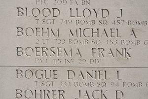 Pvt Frank Boersema graduated Holland High School in Holland, Michigan in 1936. He worked at General Motors before he enlisted.He joined his unit from a replacement depot on 7 October 1944.