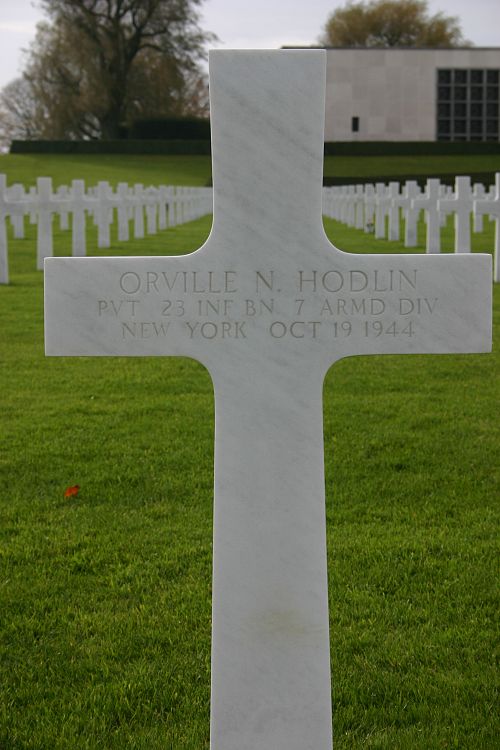 Pvt Hodlin was married toIrene G. Patnode on 6 July 1935. After the marriage they moved to Watertown where he was employed at the time of induction by Marcy, Buck & Winslow CompanyHe enlisted on 25 January 25 1944 and received his basic training at Camp Blanding until he was sent overseas in July 1944.