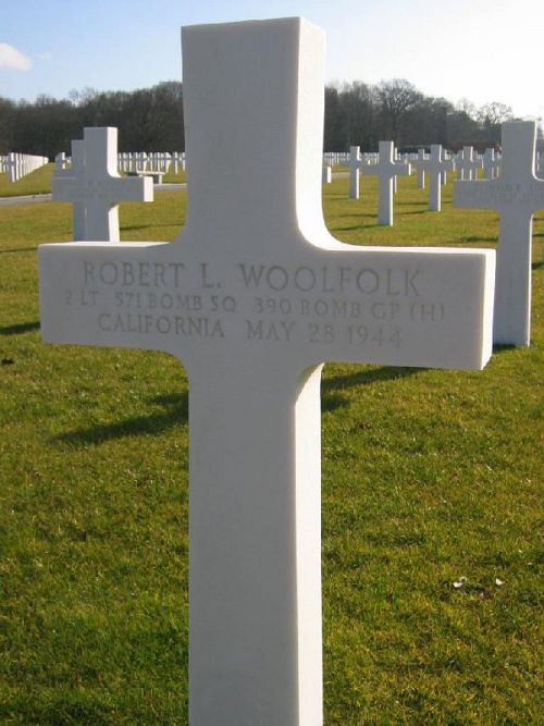 The airplane was shot down by Luftwaffe fighters. Fire developed in the cockpit and a part of the vertical stabilizer was shot away. The bomber went down in a spiral movement and crashed. Only 3 bailed out and became POW. 7 others were killed in the crash.Source of information: Peter Schouteten, Rik Verhelle, www.390th.org, www.archives.gov, www.ancestry.com - WWII Draft Card